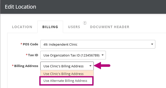 Assign Alternate Billing Address to a Location