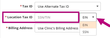 - In the Location Tax ID field, enter the Alternate Tax ID, and select EIN or SSN.
