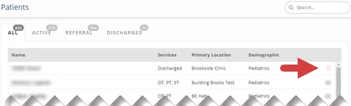 - To the right of the patient, click the delete icon.