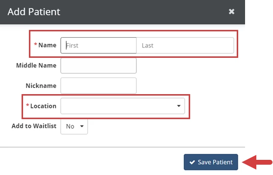 - Click the Save Patient button.
