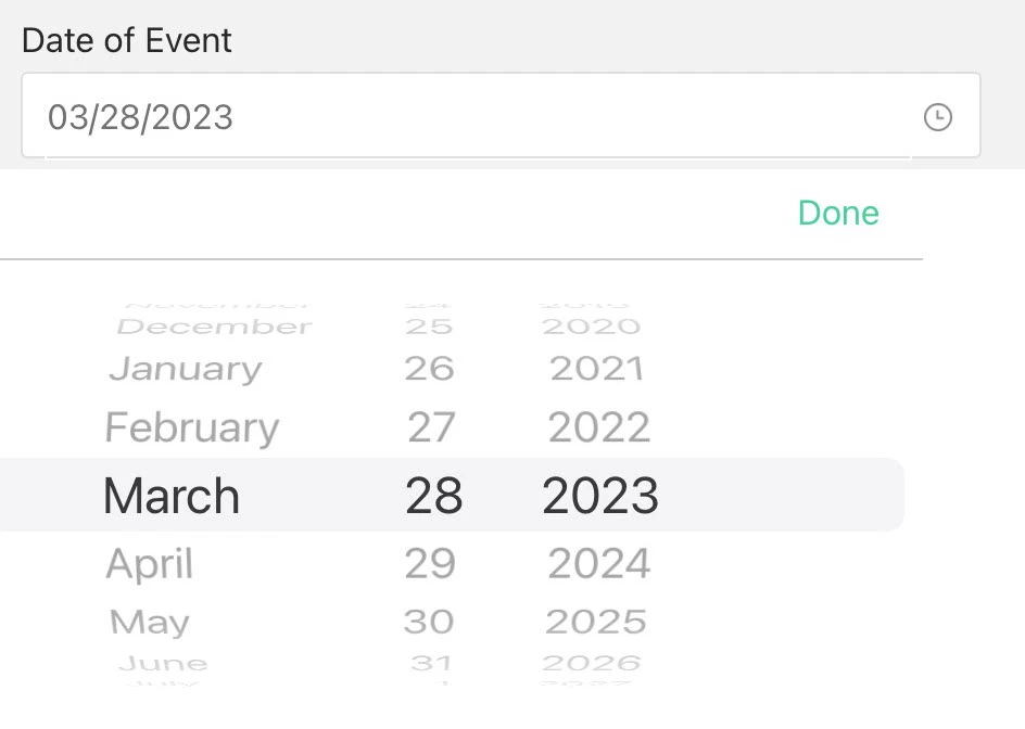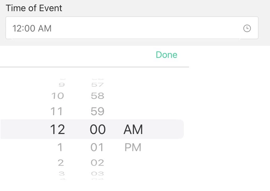 Insert a spinning picker that includes hour, minute, and am/pm.