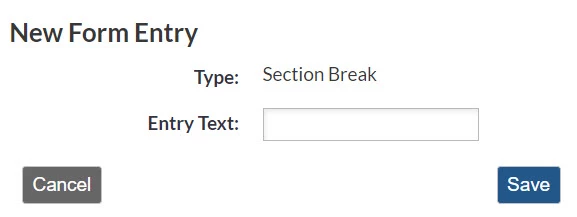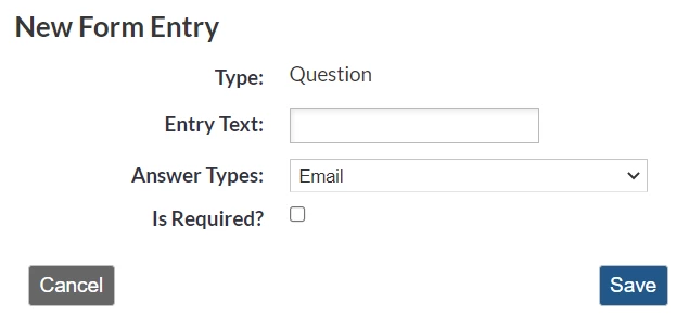 NOTE: Entry Text is a required field. This will display directly above the Email field. Check spelling and formatting as this is not editable once saved. To make changes, it must be deleted and recreated.