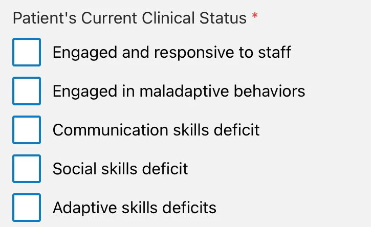 - ADD FIELD - Insert fields that collect information from the user completing a SOAP Note on the app. There are several answer types, including Free Text, Likert Scale, Email, Numeric, Date Picker, Time Picker, Duration, Signature, Slider, Multiple Choice, Multiple Select, and Session.