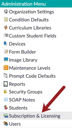 - Select Subscriptions & Licensing from the Administration Menu on the left.