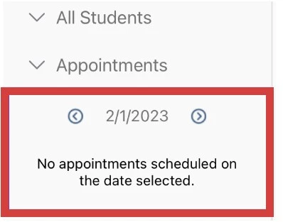 If there are no appointments for the selected date, a message will display, stating "No appointments scheduled on the date selected."