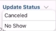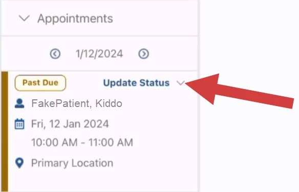 For student/client appointments that are currently showing a Past Due status, Ensora ABA Therapy users with this integration will see an Update Status dropdown option.