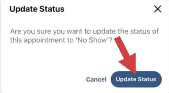 After you confirm the Update Status, the appointment will show in the app a No Show or Canceled banner. This cannot be changed after you change it to No Show or Canceled. Instead, you would need to change it on the Ensora ABA Therapy side. (The system will update statuses from the app every 10 minutes, so you will not see this change instantly.)
