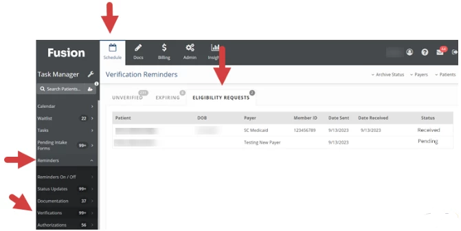 Archive or Unarchive an eligibility request made by the clinic from the Eligibility Requests tab on the Verification Reminders page.