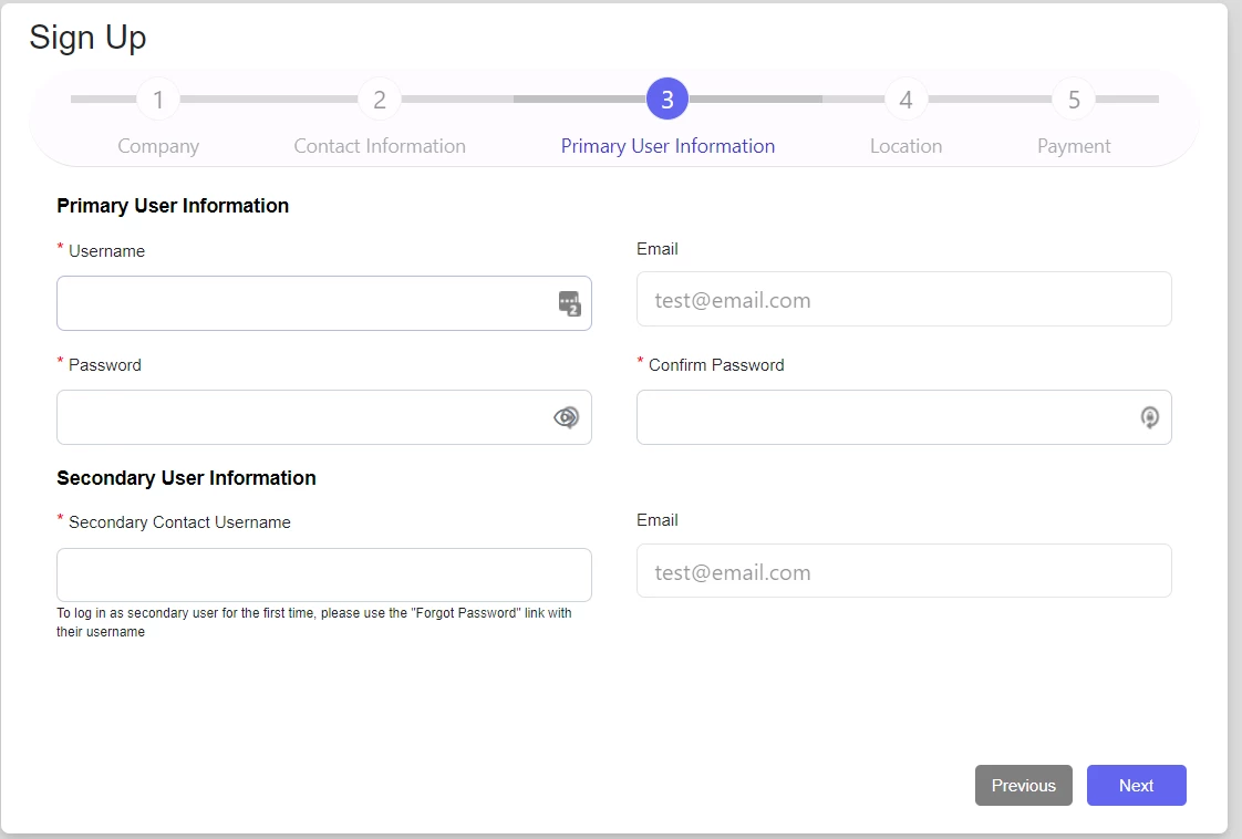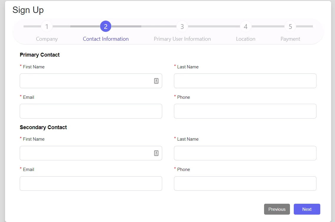 - Add your Primary and Secondary contact information.