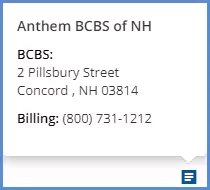 - Use the new blue note icon to view that specific Payer’s address and phone number information as found in Configuration - Services/Payers > Payers > Communication.