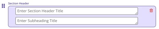 Add a headline/title for a section or field. Section Headers appear bolded in form.