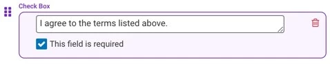 Text Box allows you to enter form text such as instructions or information. Text boxes do not require action. Copy and paste any text in. Hit enter to create space/paragraphs within the text.