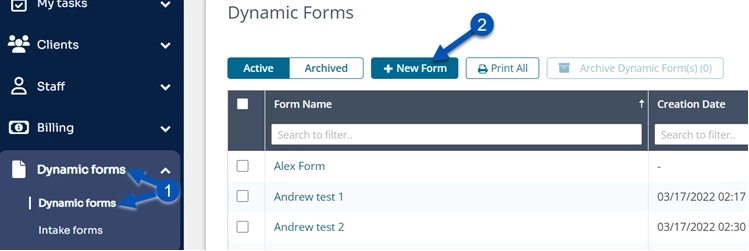 PERMISSIONS REQUIRED: You must have Therapist permissions with Dynamic Forms checked or higher. Learn More: Staff Permissions Glossary