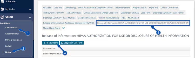 - Select the Release of Information: HIPAA AUTHORIZATION FOR USE OR DISCLOSURE OF HEALTH INFORMATION tab.