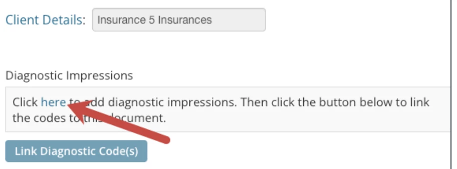 - Click here in the Diagnostic Impressions message field and add the desired codes when Initial Assessment opens.