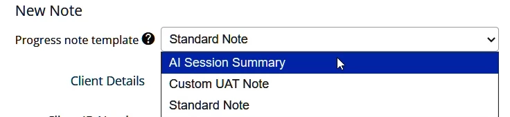 After the telehealth session recording has been processed, you can create a progress note using the AI Session Summary note template. You will receive a notification when the recording has been processed, and a badge will appear in the Agenda when the AI Session Summary is ready.