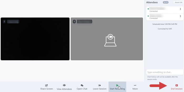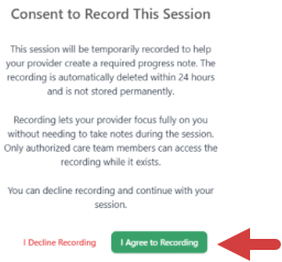 - If the client clicks I Decline Recording, the session will not be recorded.