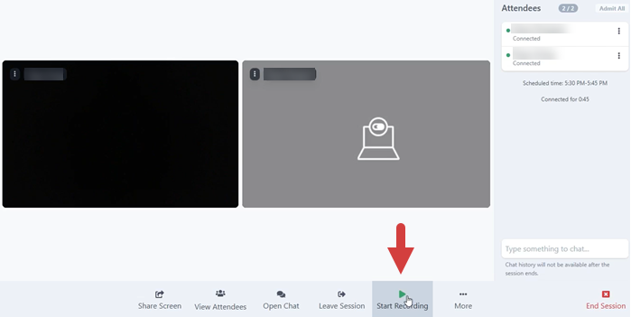 - The client must click the I agree to Recording button on the Consent to Record This Session screen.