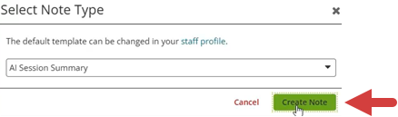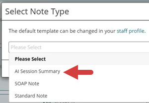 After the telehealth session recording has been processed, you can create a progress note using the AI Session Summary note template. You will receive a notification when the recording has been processed.