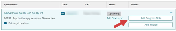 Therapists using AI Telehealth Notes can record one-on-one sessions with their clients, and the AI-generated progress note content is automatically inserted when the note is created. Both the therapist and the client must provide consent before sessions can be recorded.