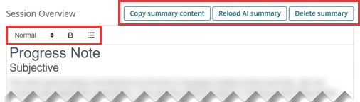 TIP: Want to customize your own template? You can add the new AI Session Overview form element manually when editing or creating template. Learn more: Create a Dynamic Form: Progress Note