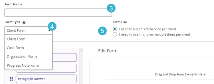 Dynamic Forms allow you to collect and store client information in the system. Each type of form - Client, Case, Organization, or Progress Note - has a specific purpose and are accessed depending on the form type. Dynamic elements are only available for Client, Case and Progress Note forms.