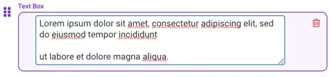 Text Box allows you to enter form text such as instructions or information. Text boxes do not require action. Copy and paste any text in. Hit enter to create space/paragraphs within the text.