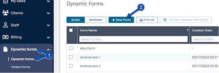 NOTE: You cannot upload your own intake forms at this time. You must either create a new dynamic form or edit existing forms.