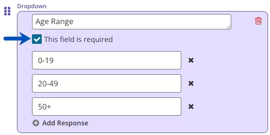 Dropdown allows you to add a multiple choice selection. Add dropdown responses in the order you would like them displayed to Client.