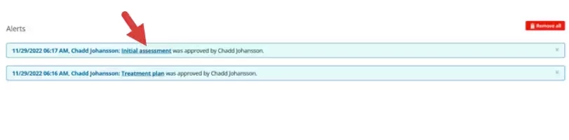 - The supervisee receives an email and alert notification to let them know an Initial Assessment, Treatment Plan or Progress Note has been approved.