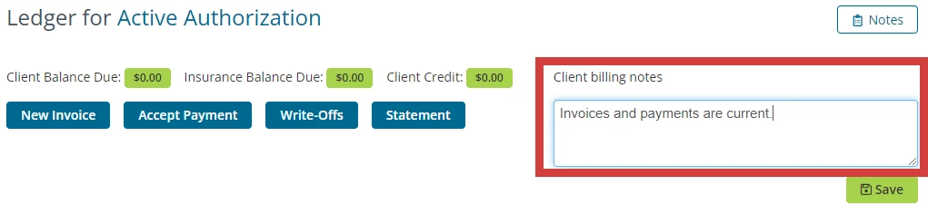 NOTE: You can add & update client billing notes from the Ledger page.