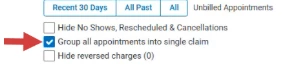 NOTE: Follow these steps to Group all appointments into single claim in bulk before creating batch invoices.