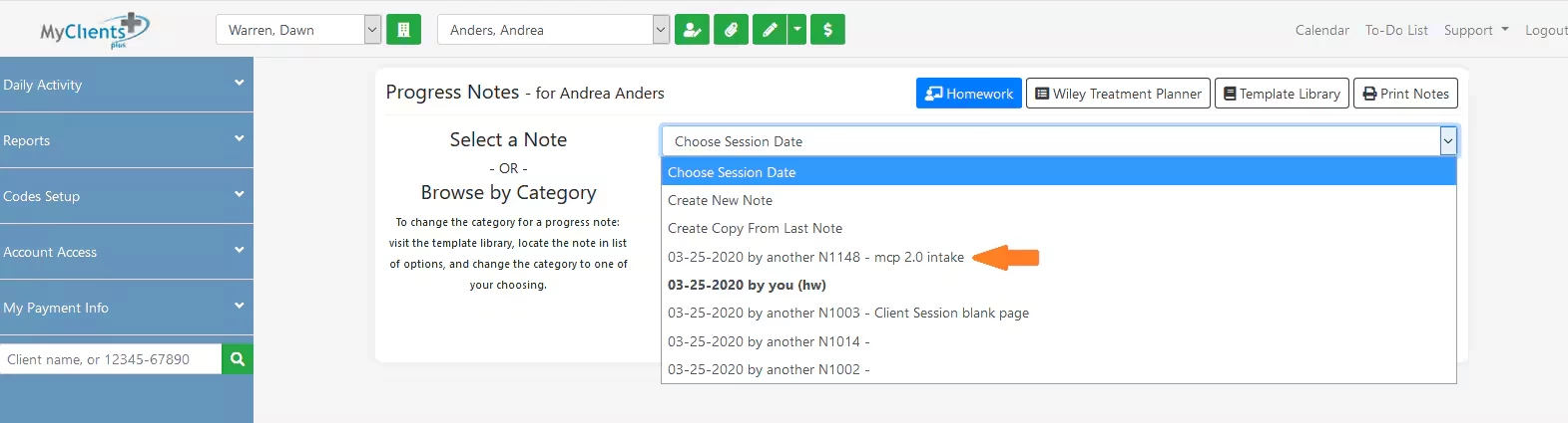 - Once the client has submitted the Intake form, it can be seen by the provider in Progress Notes.