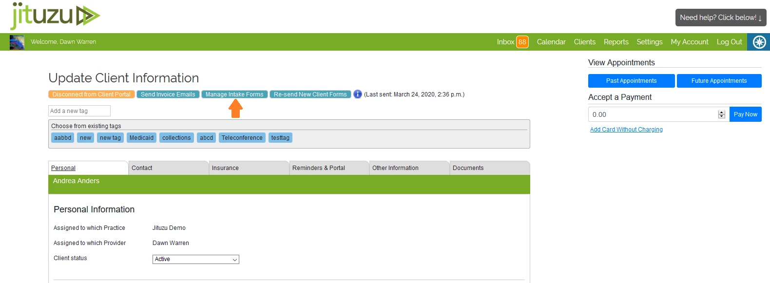 You can send your Client's Intake Forms through the Client Portal. In order to do this: