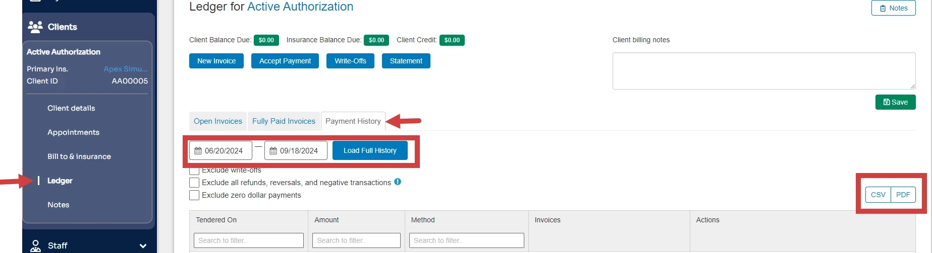 The Notes History for a Client can be found on their Client Profile and must be exported individually for each Client. There is no bulk export option for Client's Note History.