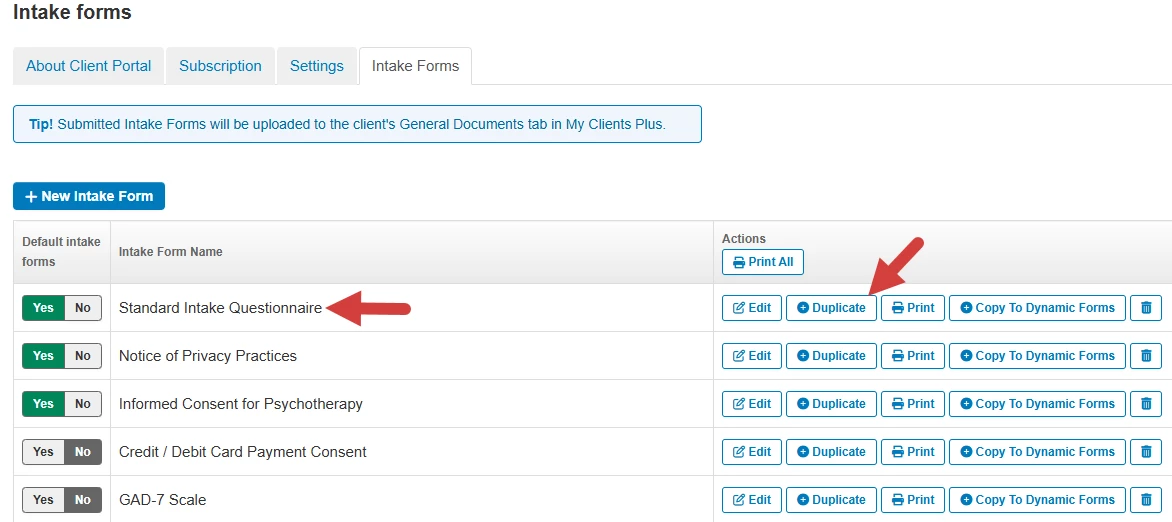 Duplicate Intake Forms