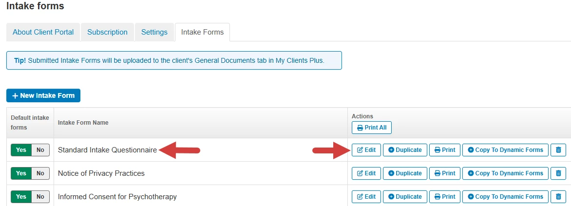 Edit Existing Intake Forms