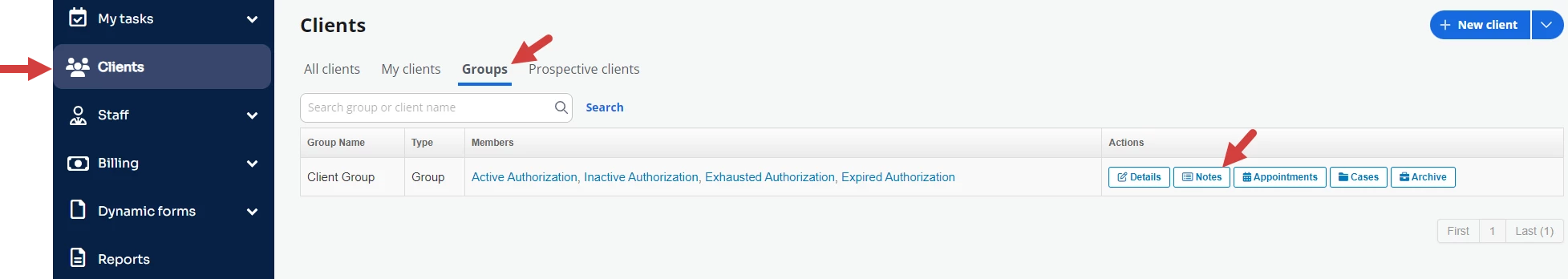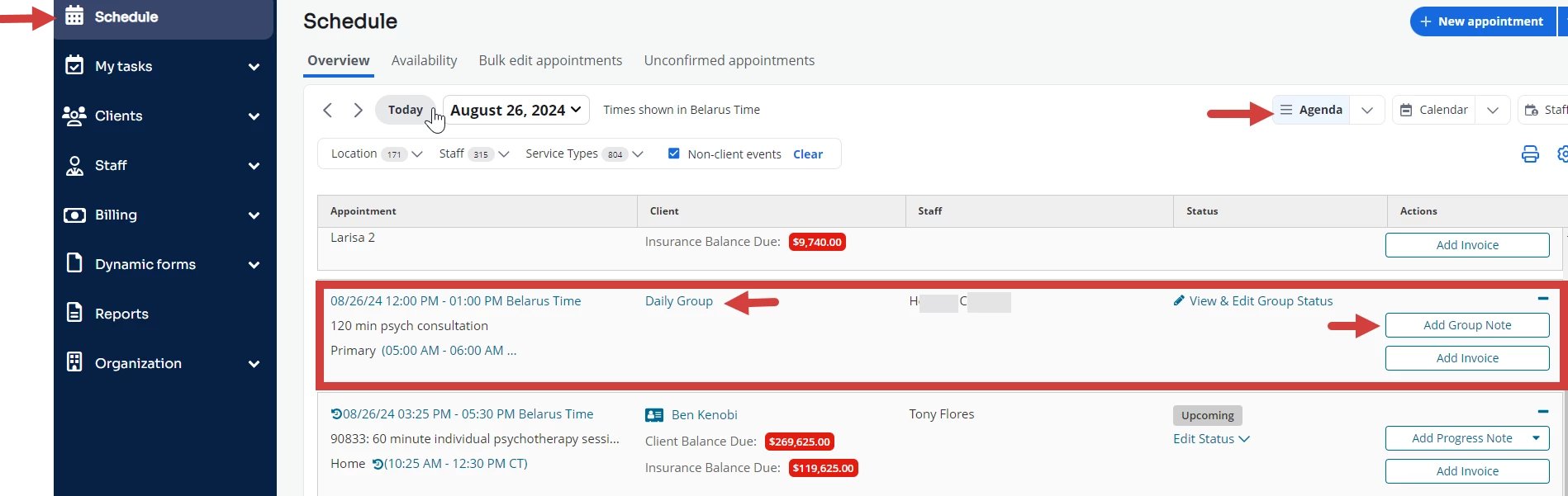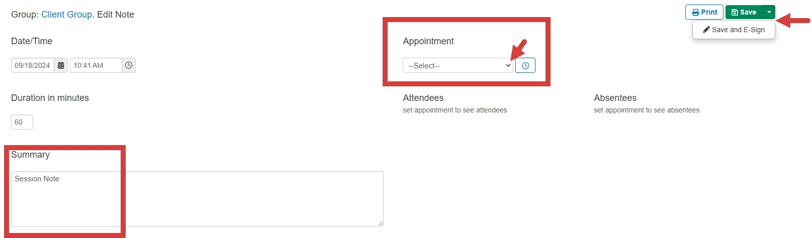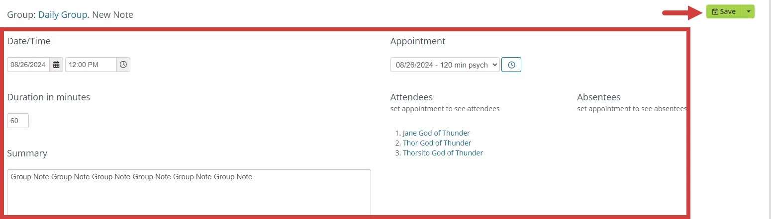 - Click Add Group Note for the appointment.
