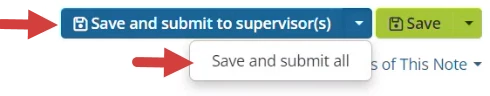 NOTE: If a therapist's permissions require a supervisor's approval or signature on notes, the therapist will select Save & Submit to Supervisor(s). Select Save and submit all from the drop down if you want submit all group notes.