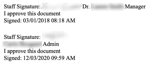 You'll then see both Staff Signatures on the document.