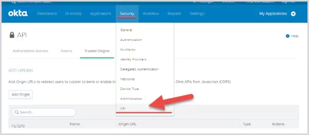 Step 9: Navigate to the Trusted Origins tab and click Add Origin