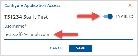 New and existing users must be configured so that their Application Access Username is the same as their Okta username to access EchoVantage via Okta. This can be done by: