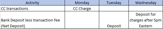 Example of transaction and deposit timing: