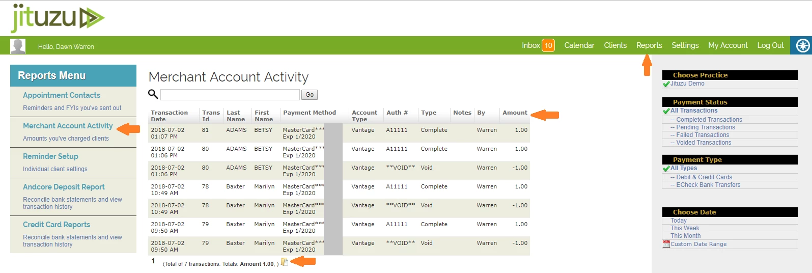 With the Merchant Account, there are three types of reporting that you can view:
