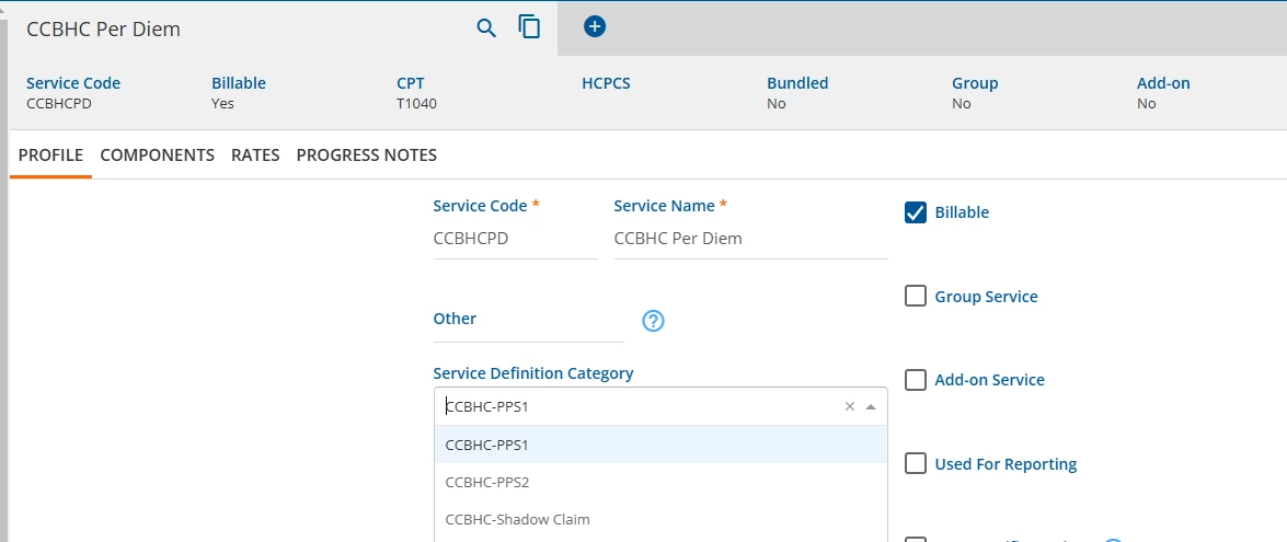 When billing CCBHC services, in order to have all Shadow Claims billed on the same claim as the Daily (PPS-1) or Monthly (PPS-2) Services, these other settings should be observed: