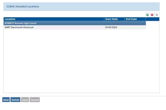 Enter any Service Locations that exclude a service from CCBHC eligibility.