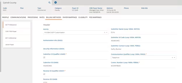 The 837 Acorn must be selected in the 837P Billing Method for all appropriate Payers: