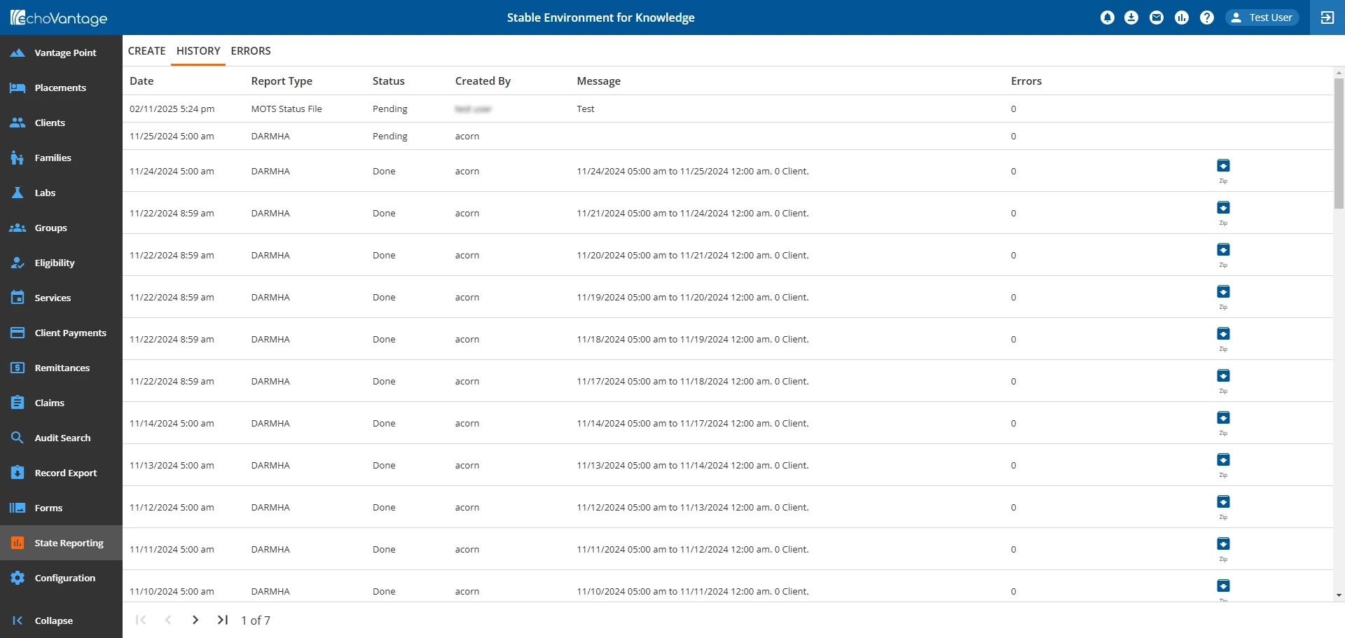 The State Reporting main menu option allows access to state-specific custom reporting. The dropdown list will be populated with the state reports installed for your agency. The currently installed version of a State Report can be found in the dbo.AcornRegistrations table.