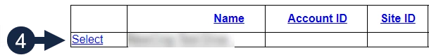 - Click Select next to the appropriate Name and Account ID.