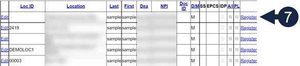 - Click the Register link on the row with the appropriate location.